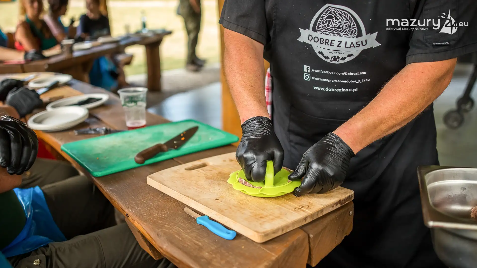 Warsztaty kulinarne pod nazwą „Dzikie Smaki Mazur” pokazały, że łączenie kuchni tradycyjnej z nowoczesną jest jak najbardziej możliwe, a przede wszystkim smaczne – doskonałym tego przykładem był wyśmienity hamburger z kotletem z dziczyzny. Poza niesamowitymi hamburgerami, uczestnicy warsztatów pod czujnym okiem Mistrza Kuchni Ireneusza Zieniewicza uczyli się, jak zrobić białą kiełbasę oraz przygotować mazurskie leczo. Przyjemne zapachy grillowanych warzyw i mięsa, niesamowita atmosfera, a także urokliwość samego miejsca na długo utkwią w pamięci warsztatowiczów. Poza samymi warsztatami dla wszystkich chętnych, którzy odwiedzili tego dnia teren Wyłuszczarni była przygotowana degustacja leśnych przysmaków, dziczyzny, przetworów – a także leczo gotowanego w kociołku nad ogniskiem. Dla ochłody można było skosztować mrożoną kawę z żołędzi.