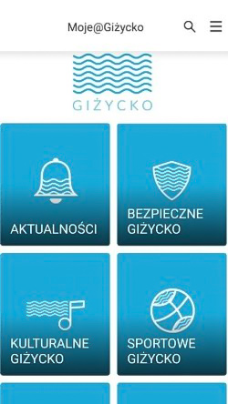 Wszystko pogrupowane w kilku kategoriach: Aktualności, Bezpieczne Giżycko, Kulturalne Giżycko i Sportowe Giżycko.