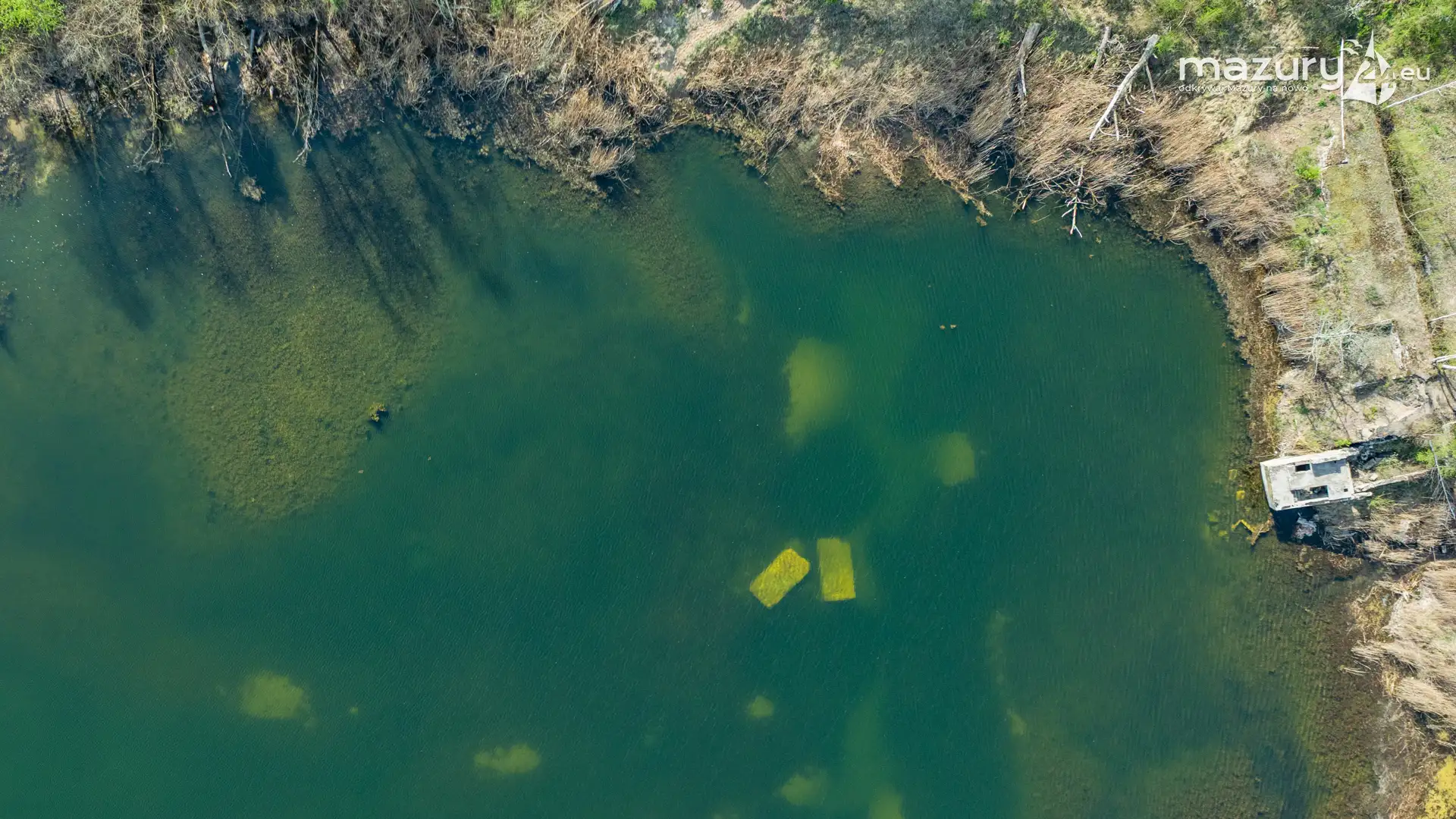 Niewielkie jezioro niedaleko śluzy Długopole, kwiecień 2025 r.