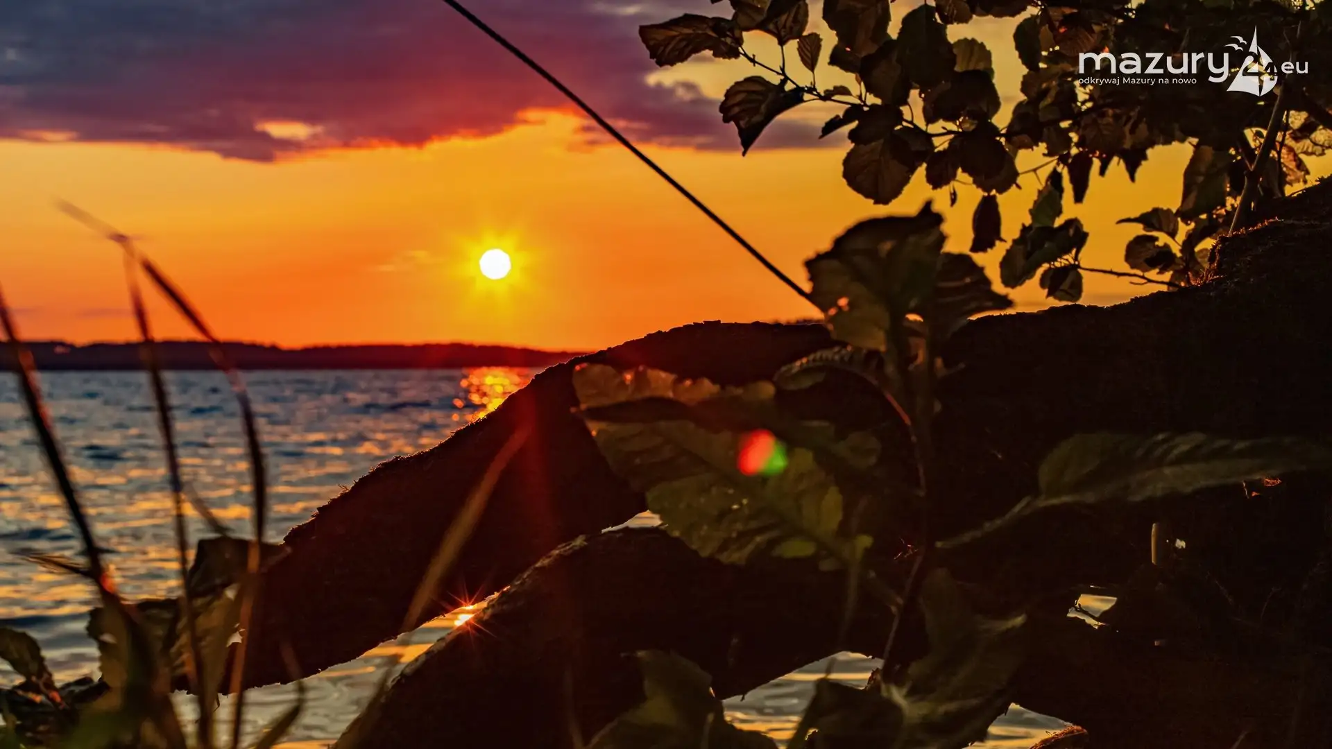 Zachód słońca nad jeziorem Bocznym, czerwiec 2021 r.