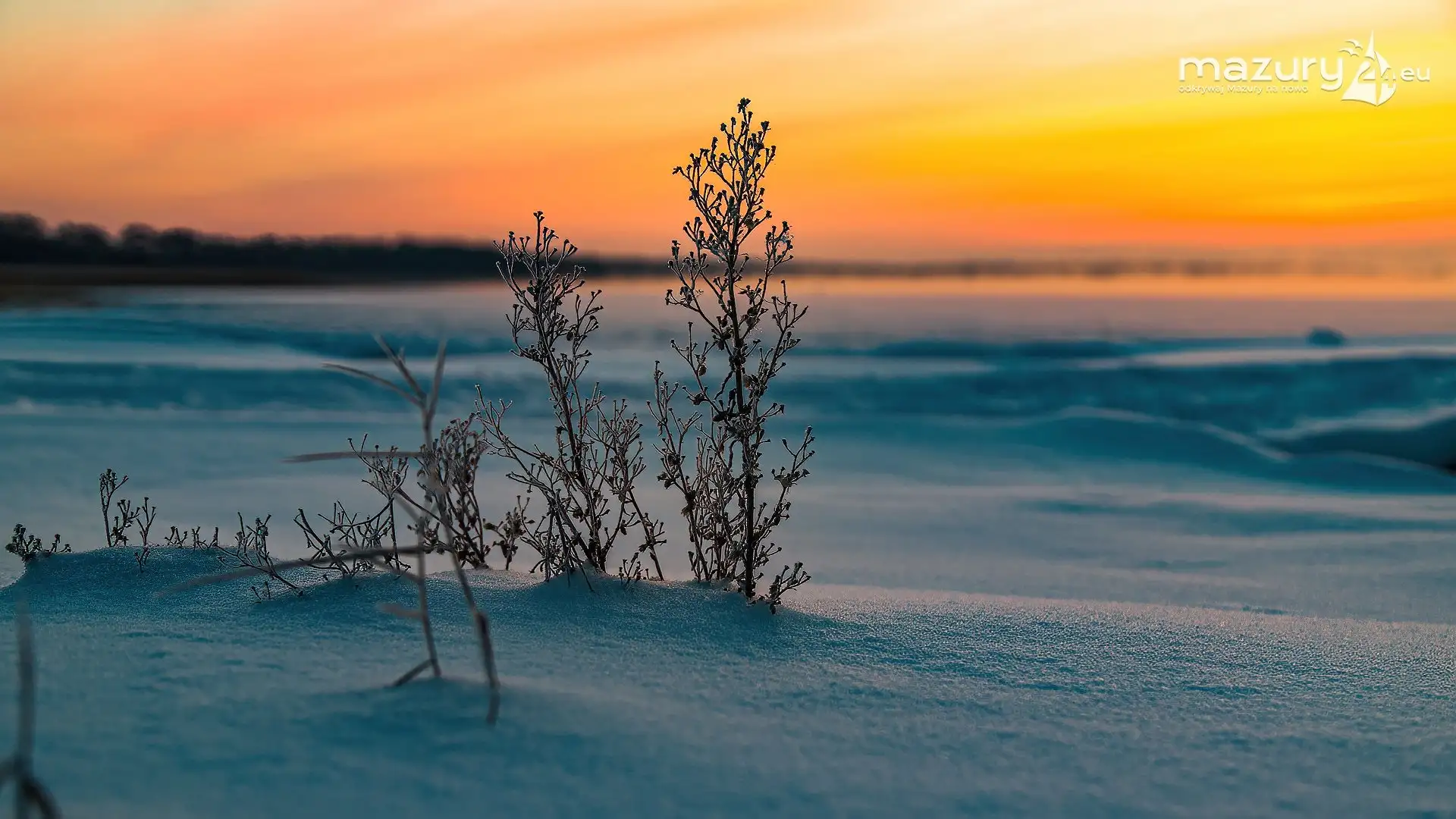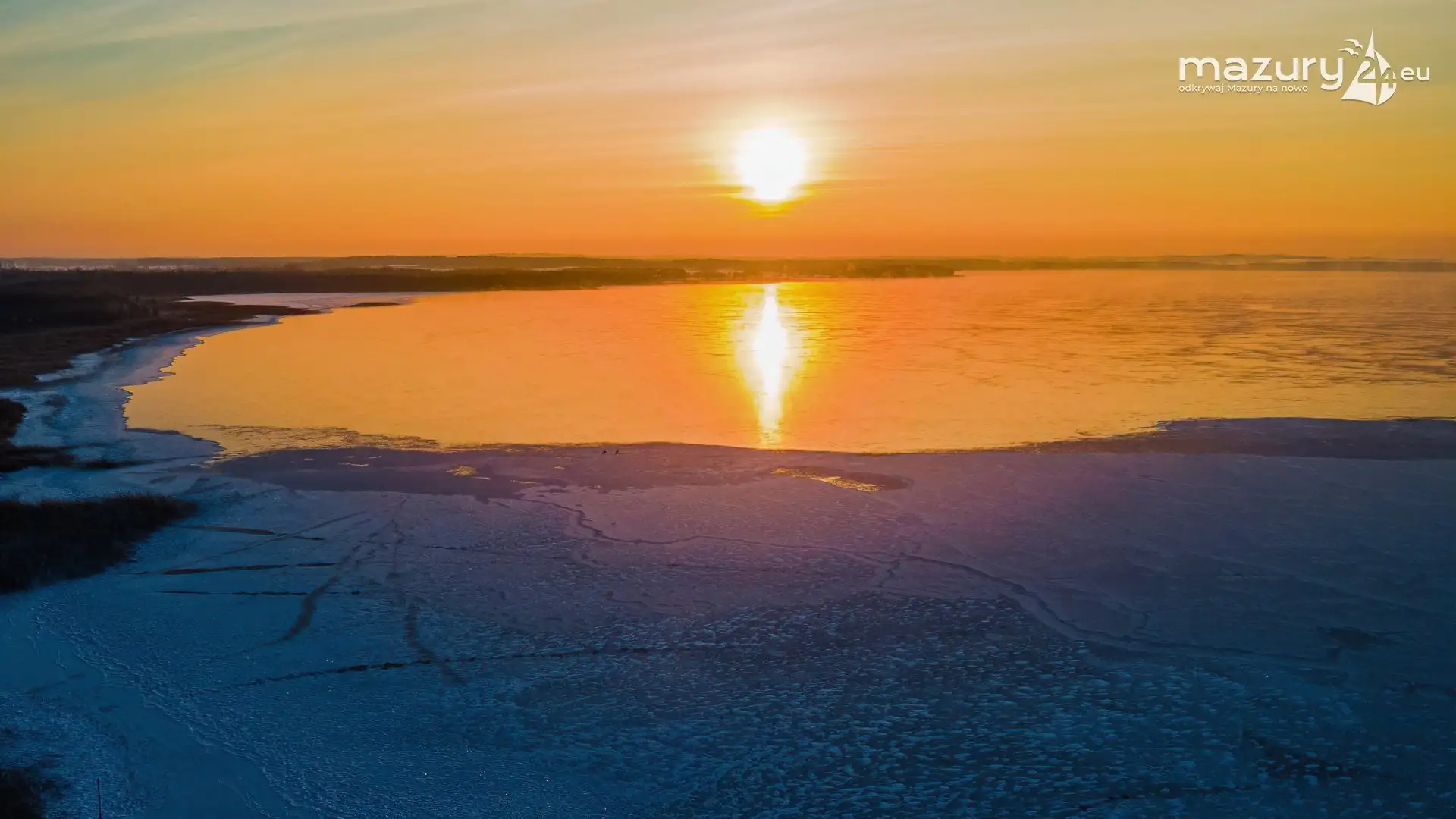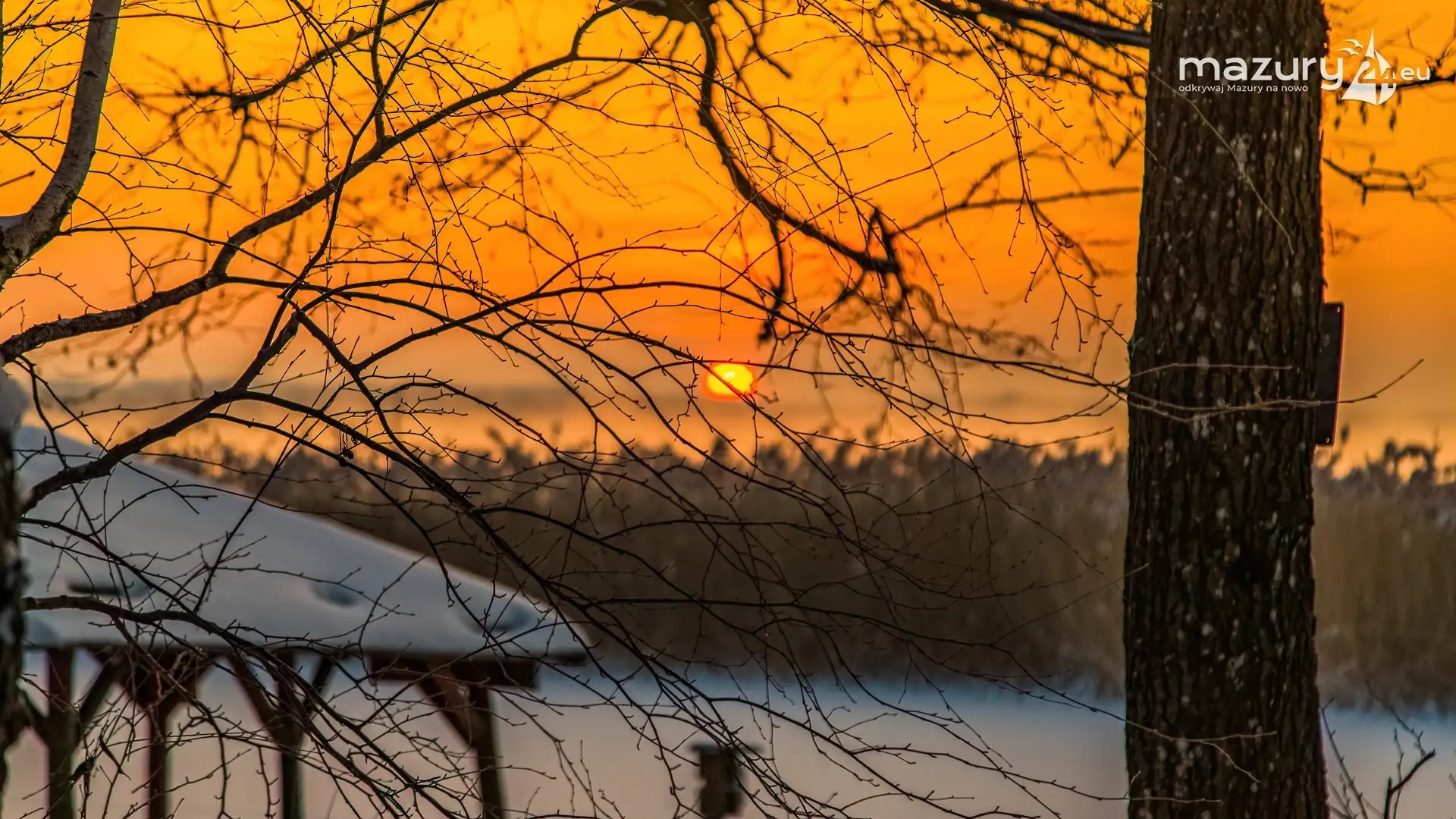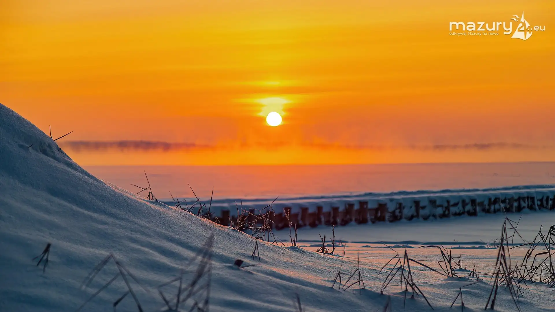 Zimowy zachód słońca między jeziorem Dargin i Sztynorckie