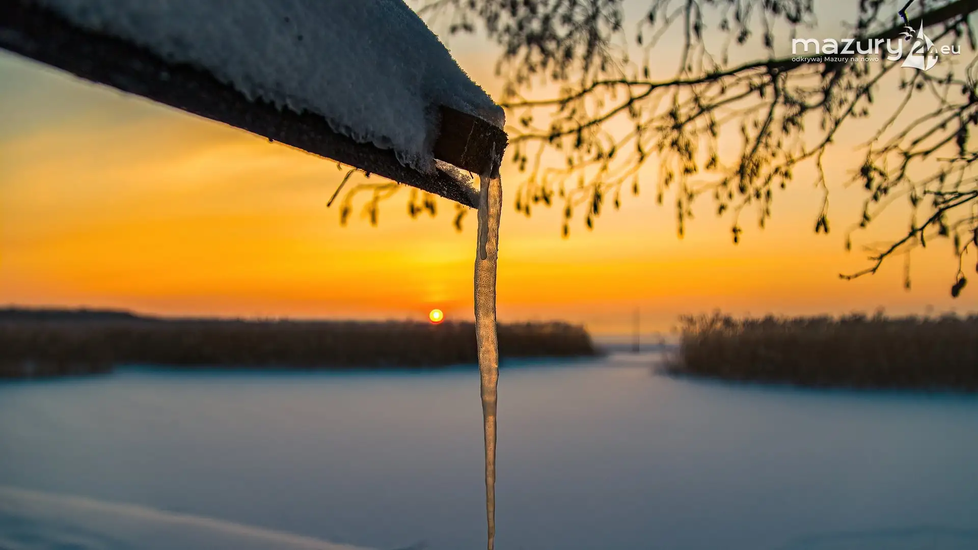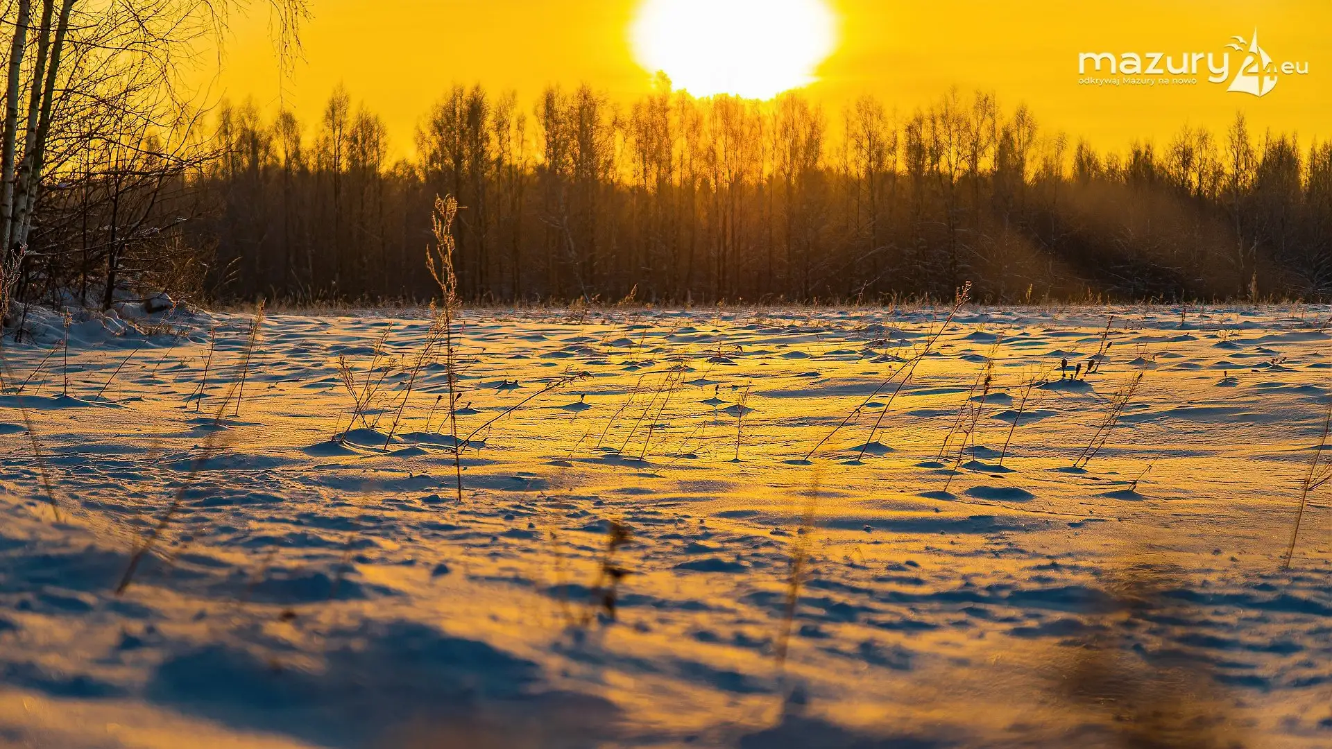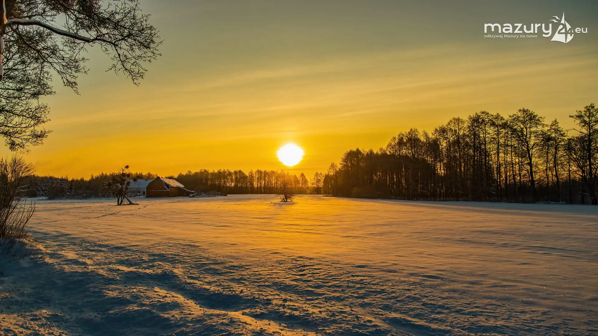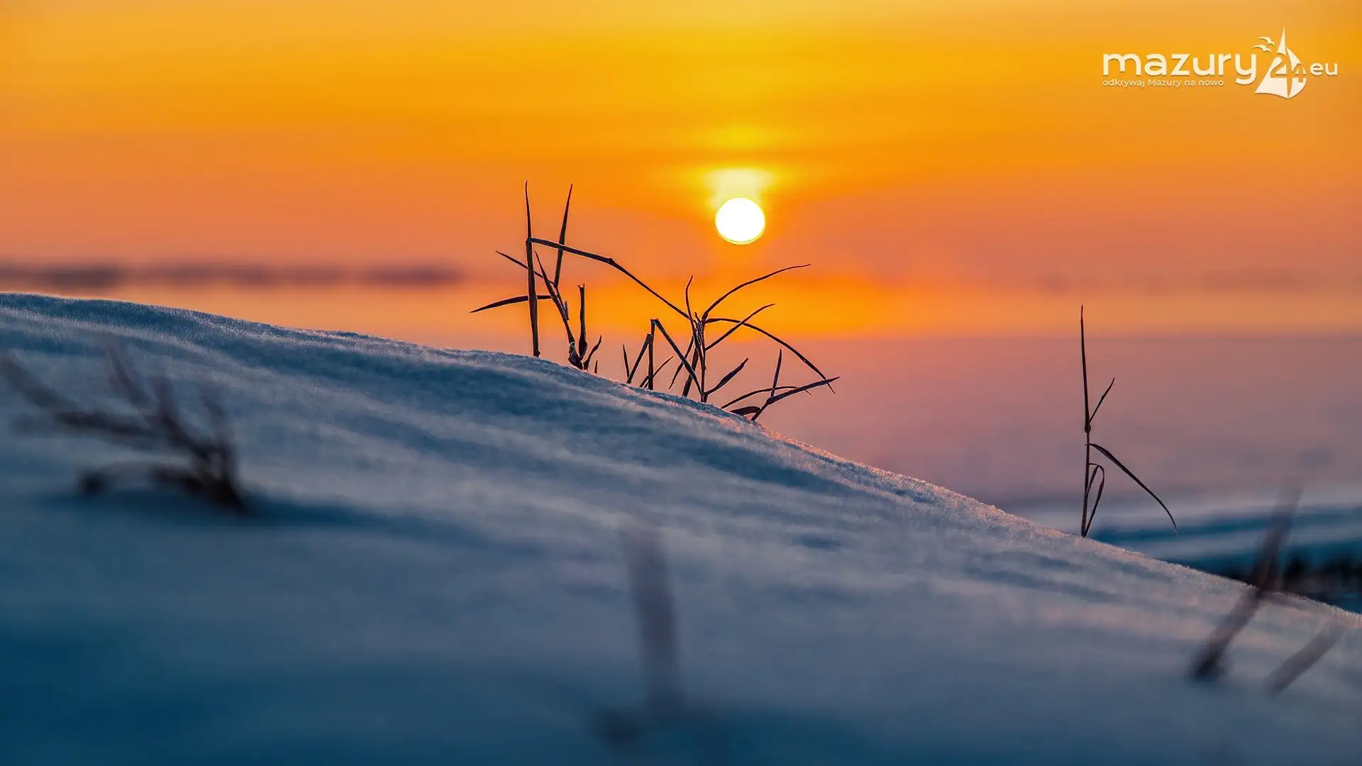 Zimowy zachód słońca między jeziorem Dargin i Sztynorckie