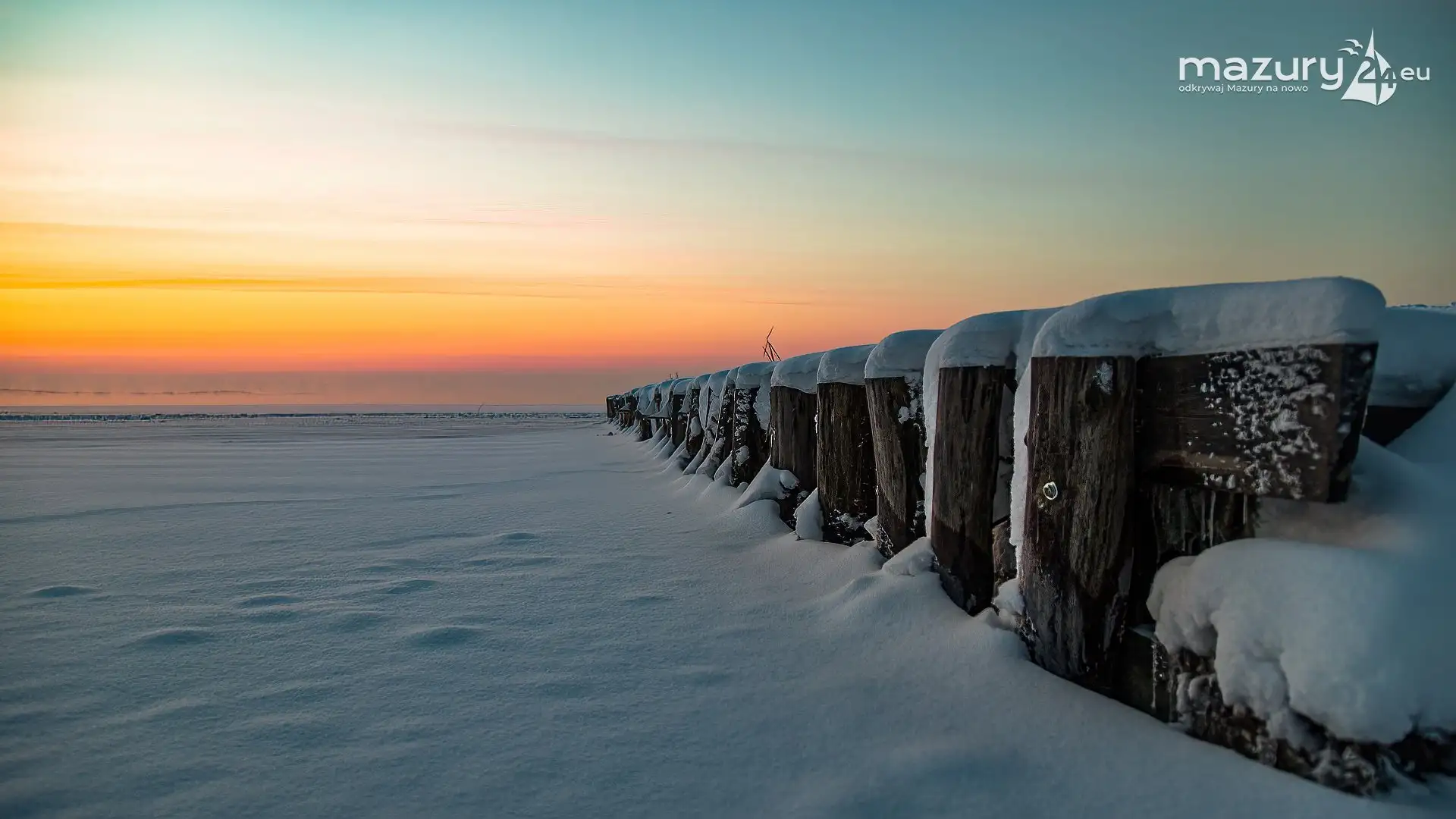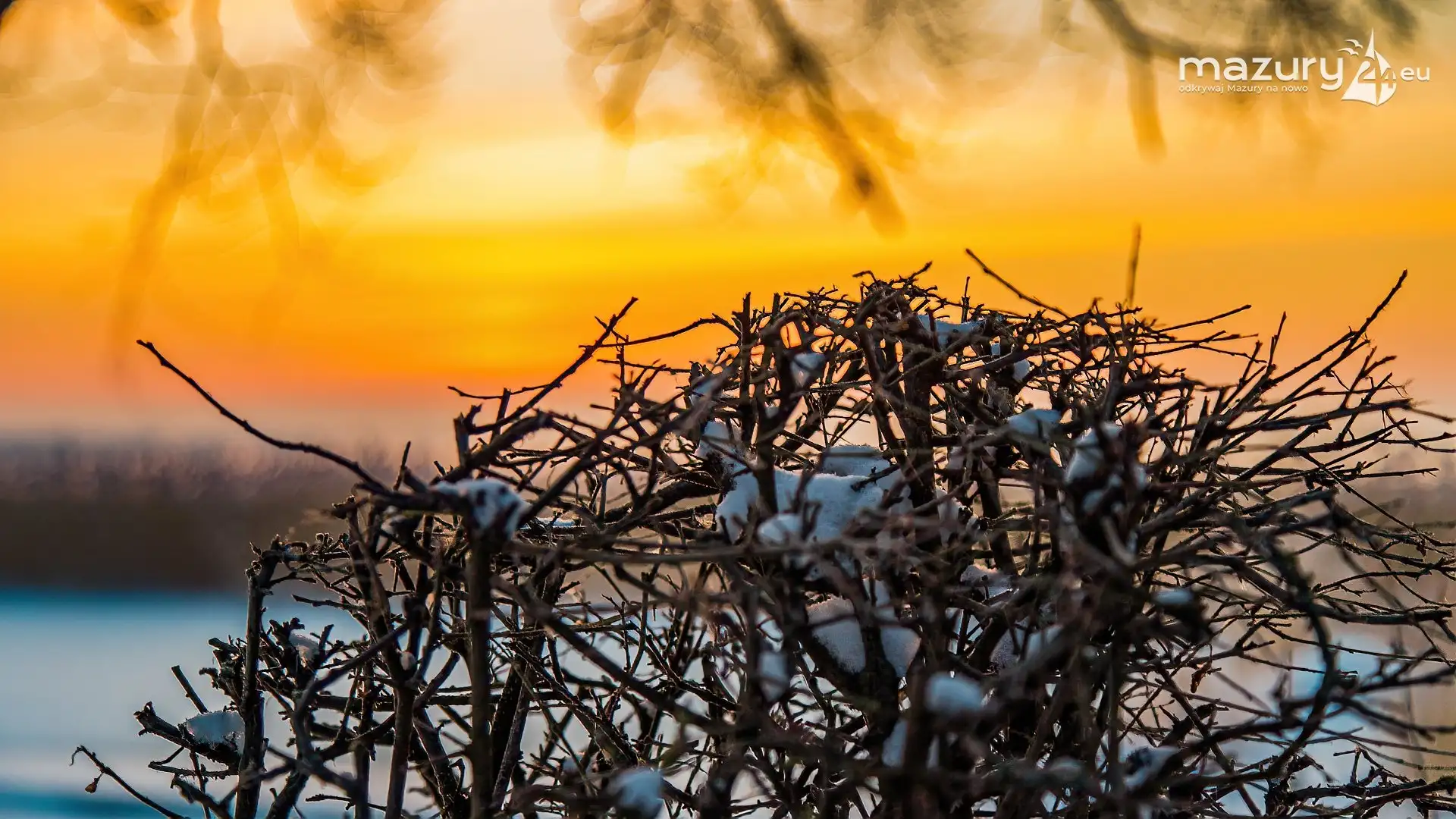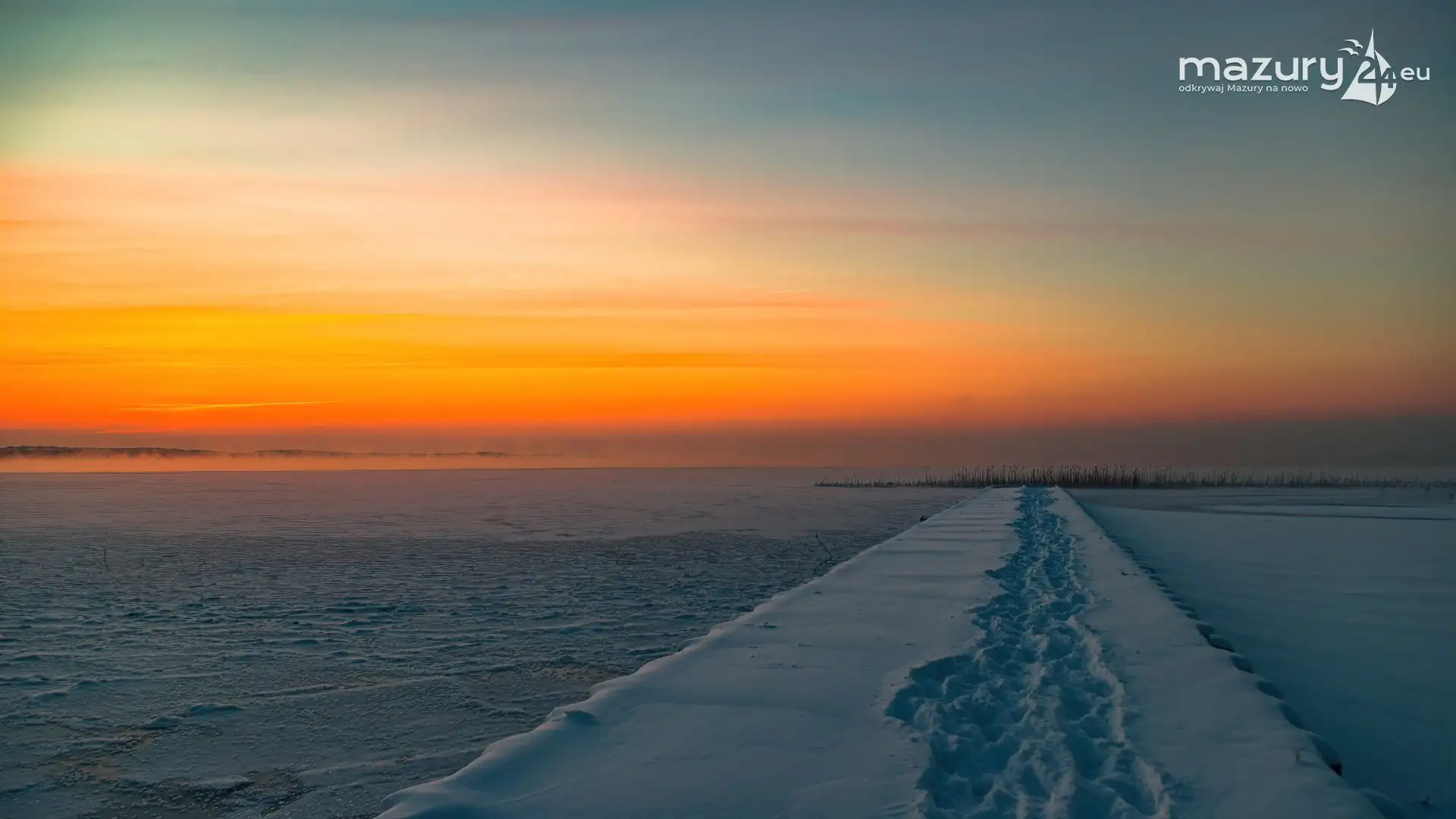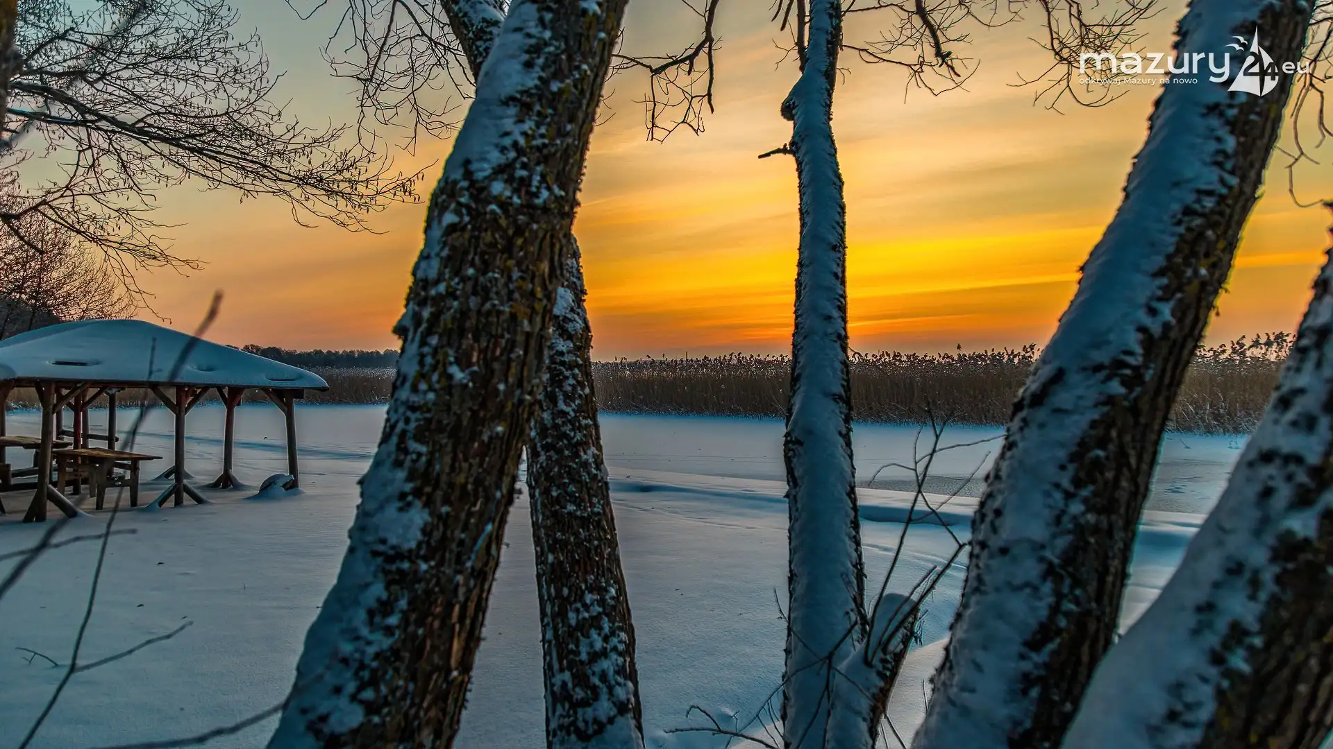 Zimowy zachód słońca między jeziorem Dargin i Sztynorckie