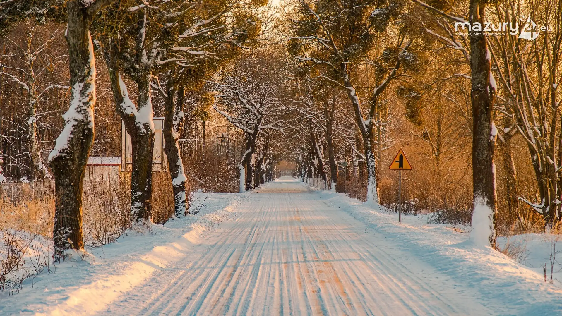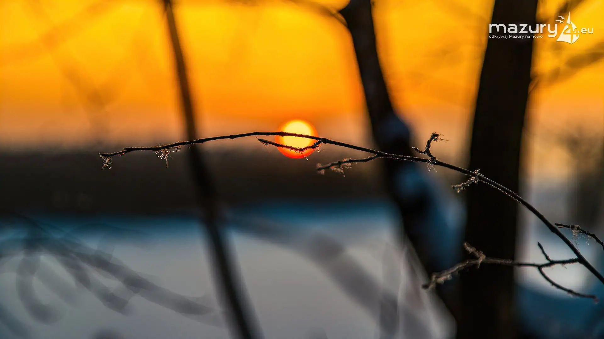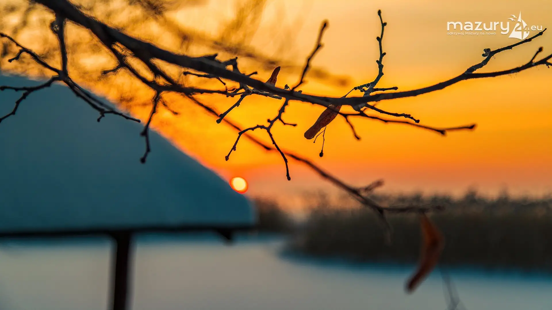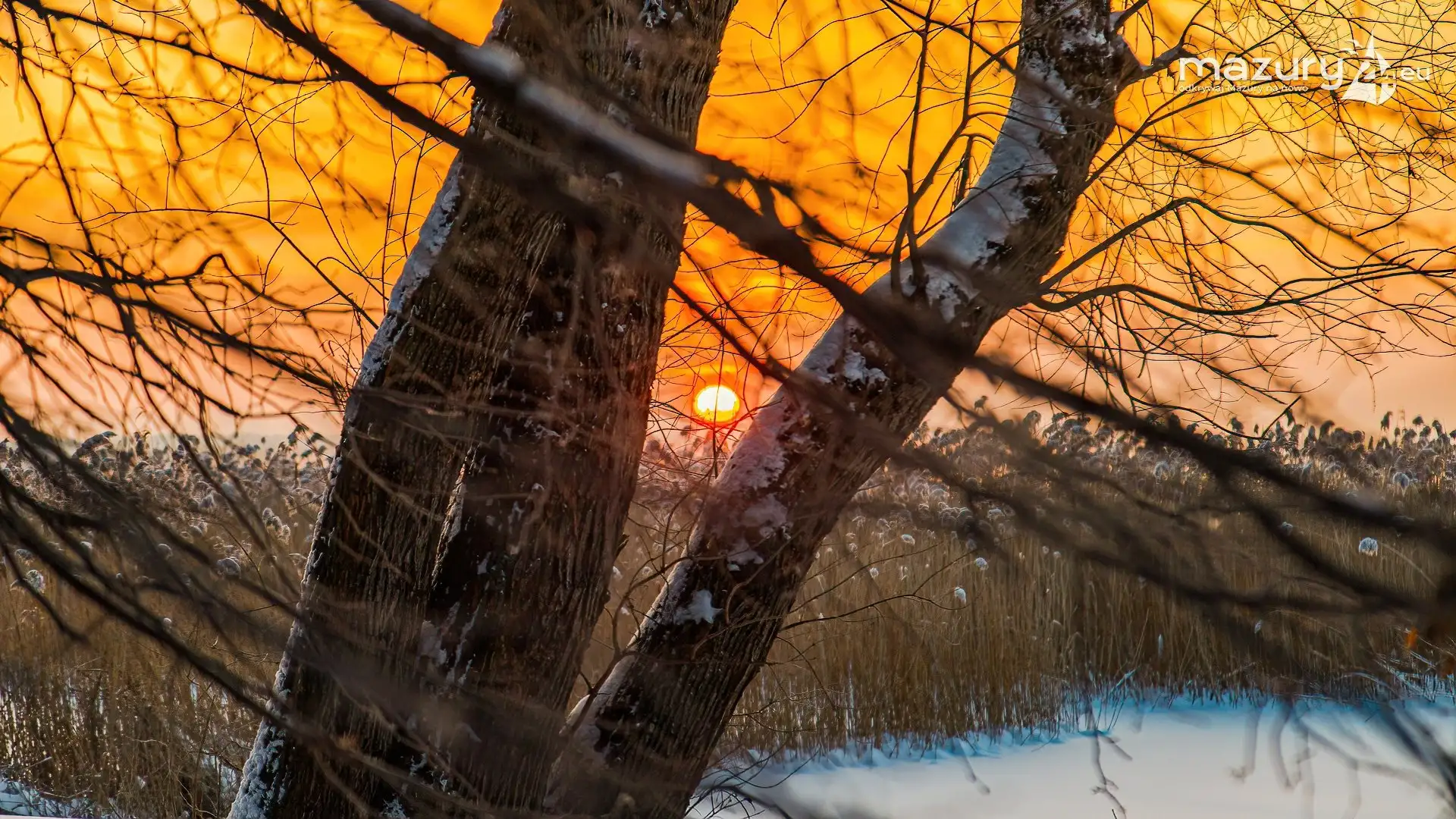 Zimowy zachód słońca między jeziorem Dargin i Sztynorckie