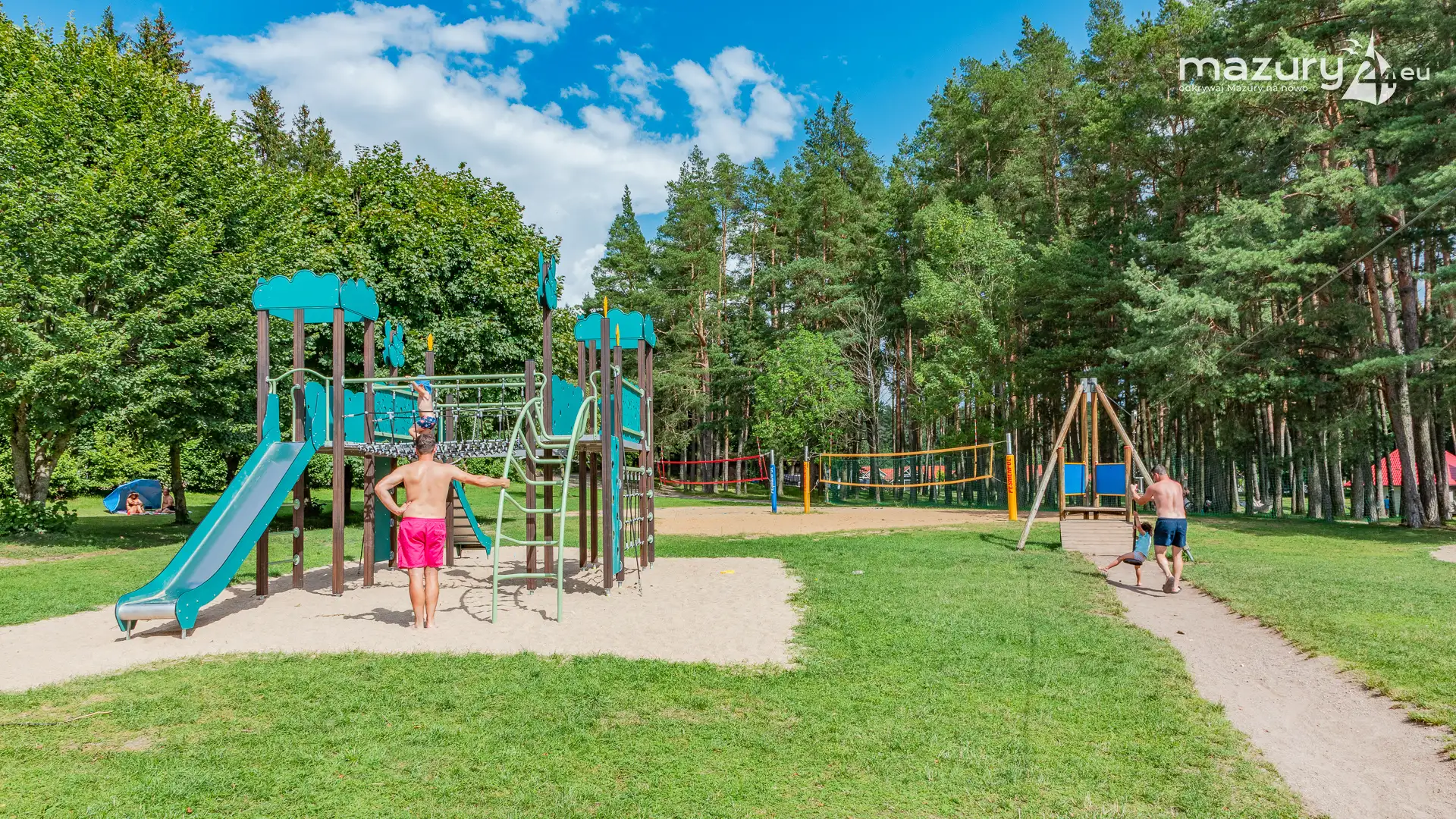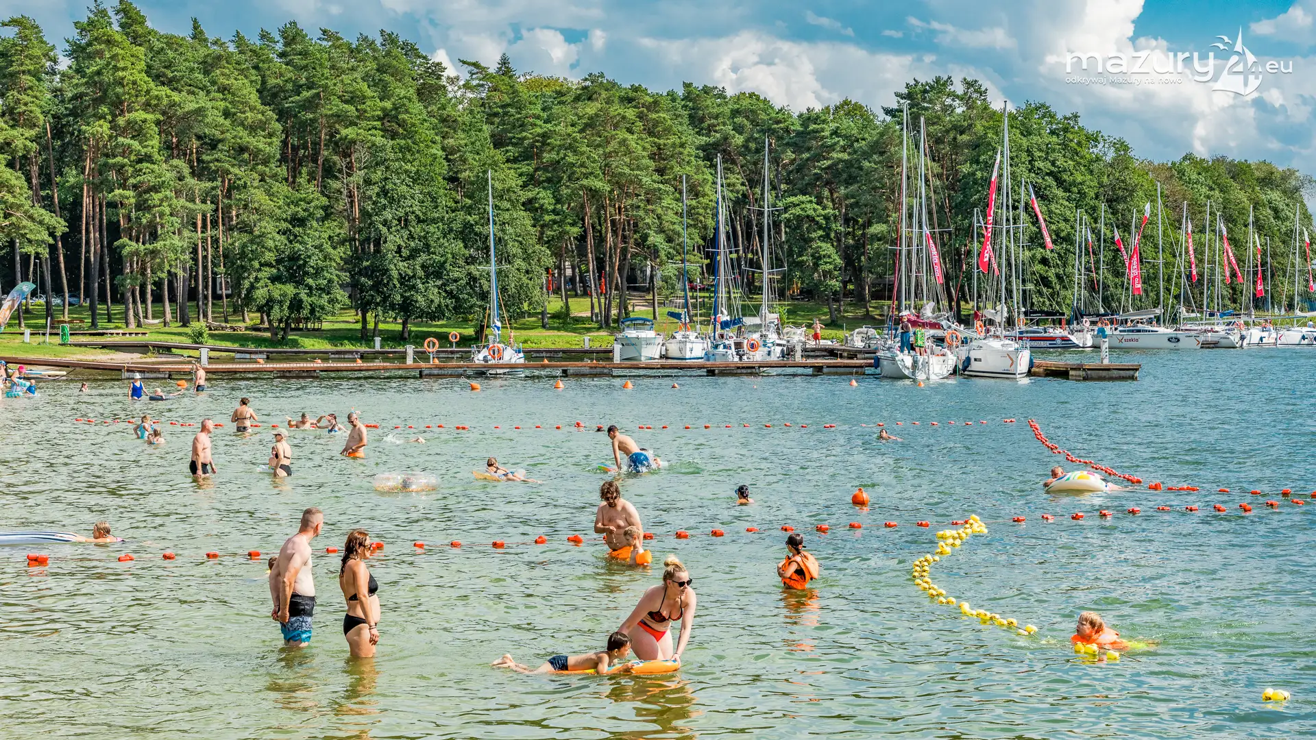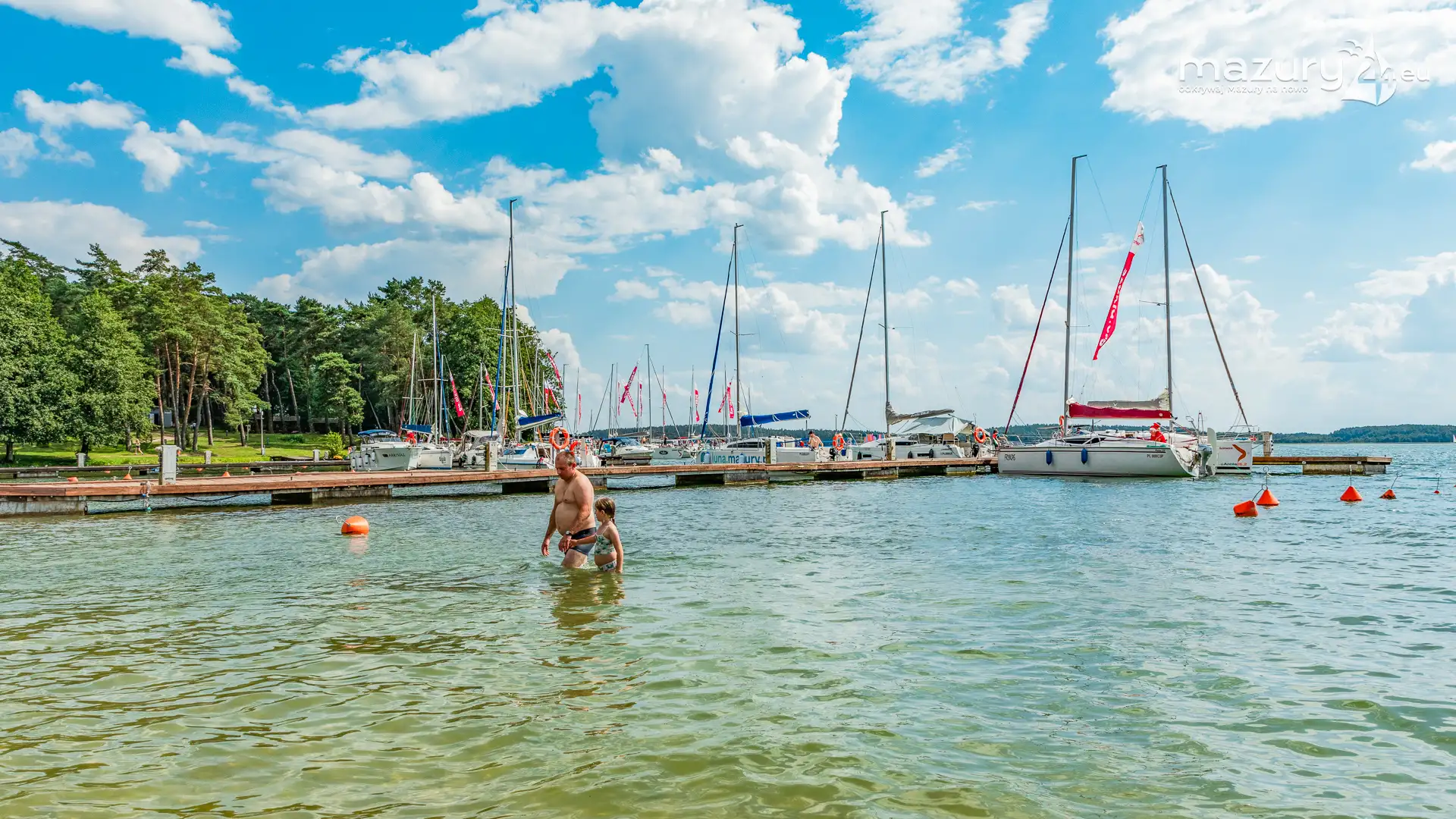 Piękny Brzeg to najlepsze miejsce dla żeglarzy z dziećmi na północnej części szlaków Wielkich Jezior Mazurskich. Leży nad jeziorem Święcajty, po wejściu na jezioro przez bramę Kalską, 90 stopni skręcamy w lewo i jesteśmy na ostatniej prostej. Część ekipy Mazury24 jeszcze kwalifikuje się do miana dziecka - jesteśmy tam kilka razy w sezonie - polecamy.