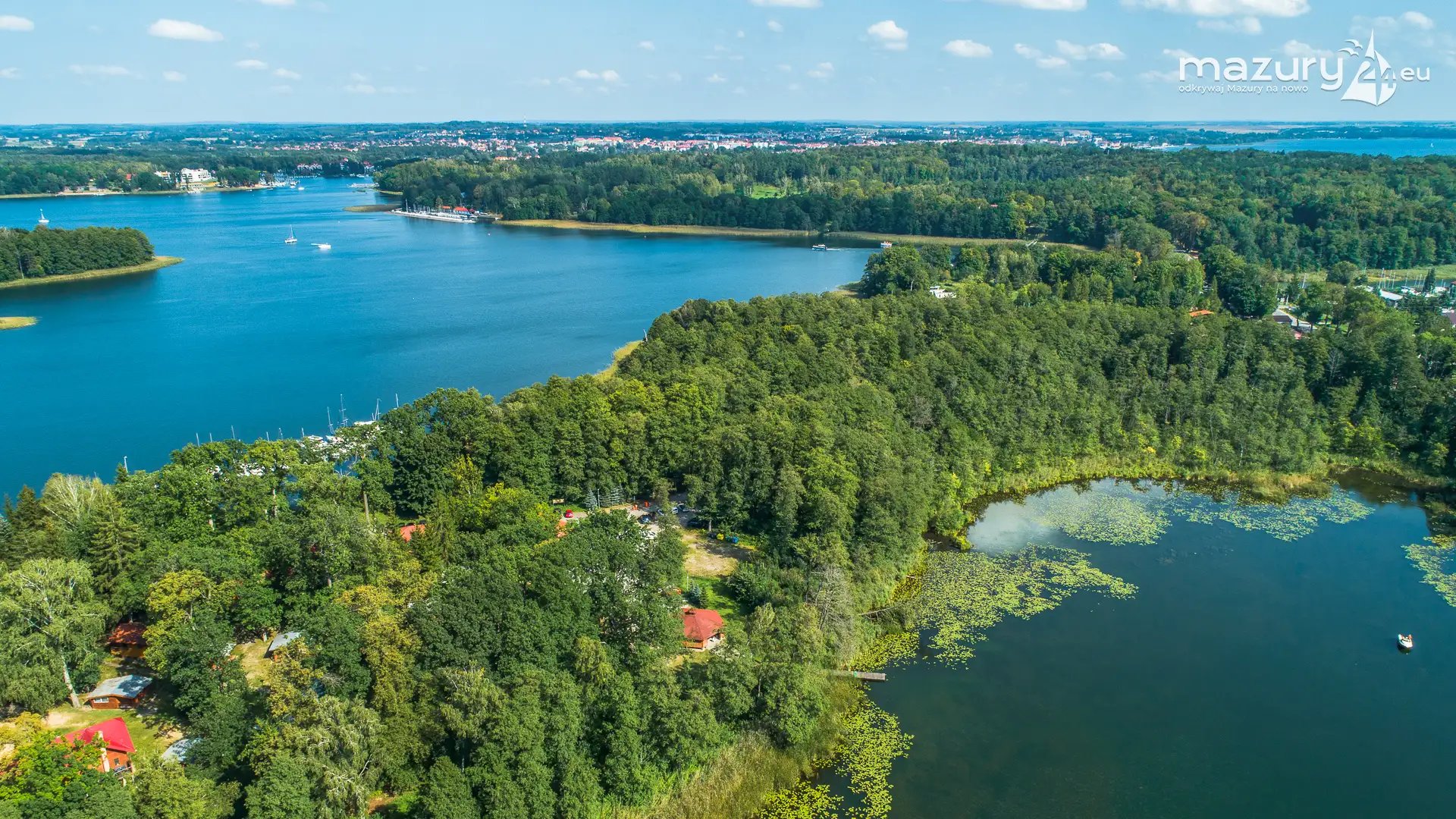 Pod Dębem nad jeziorem Nidzkim z lotu ptaka, sierpień 2025 r.
